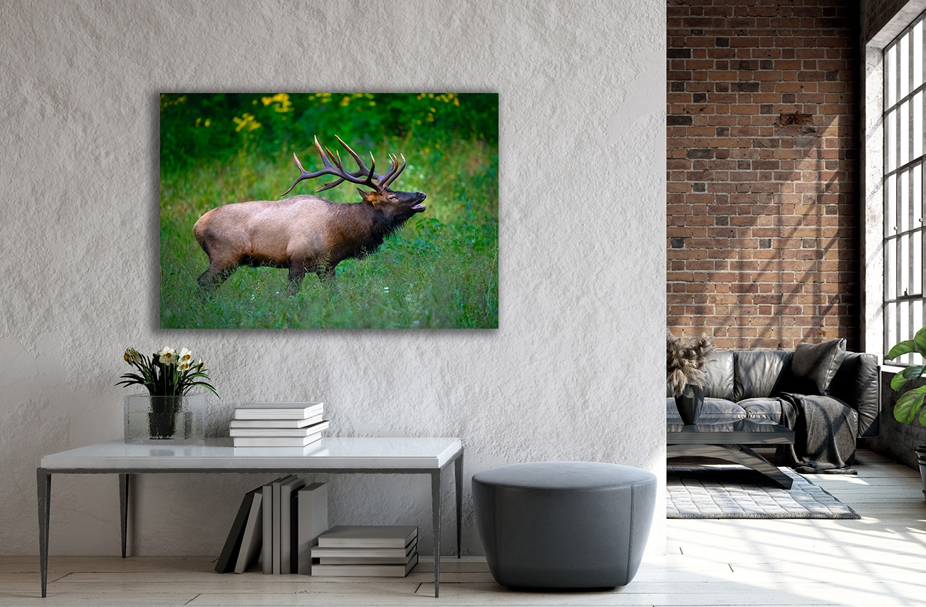 Smoky Mountain NP in the fall is a terrific time of the year to photograph the many elk in the national park. At that time of year the leaves are changing and the Golden Rod is at its peak. With a little luck you may catch an elk bugling amongst these flowers. The sound of the bugle is something you won’t forget. I hope this image brings out the sensation of being there.